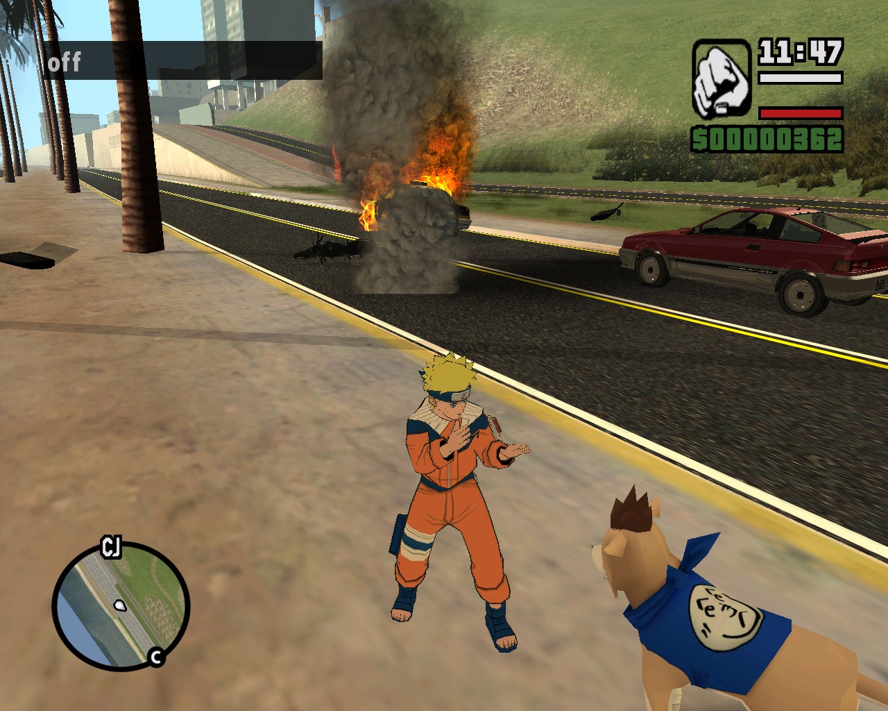 Качество текструр данного патча было улучшено и приближено к реальности. Форма и внешний вид автомобилей стали больше похожи на свои оригинальные модели. Транспортные средства в модификации представлены исключительно марками производства США. Все вывески магазинов, внешний вид домов и мини-карта полностью изменены. Дом главного героя из одноэтажной невзрачной постройки превратился в двухэтажный особняк. Члены враждующих банд San Andreas представлены в образе персонажей из Наруто.